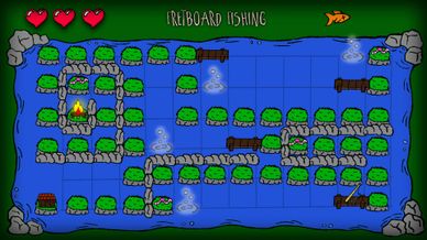 Practice fretting technique & guitar slides as you hunt for bait to catch and cook fish for your hungry pets!