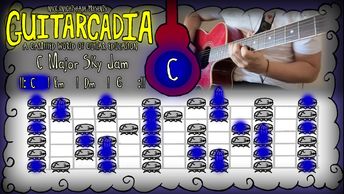 Practice arpeggios, alternate picking, fretting techniques, note grouping & note naming as you explore the cloudy sky world!